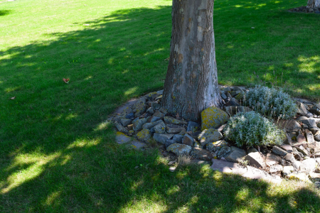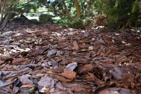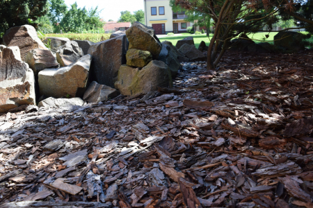 Díky bavlněným páskům (ty světlé) drží mulčovací kůra lépe na svém místě.